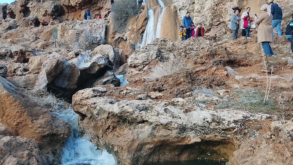 Derik’te 20 bin dönümlük meyve ve zeytin ağaçlarının bulunduğu GAP Bahçeleri’ni sulayarak hayat veren GAP Şelalesi, son günlerde etkili olan